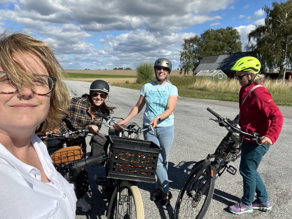 The weather has been so nice lately, and I can only hope that Autumn continues this way! Erin and Melissa rode their bikes from Malmö to Lund, where Carole and I joined them for a cycling adventure! I am still not confident about biking except under the most perfect of conditions, so it was a great time to get out of my comfort zone. We were mostly on dedicated bike paths and there was little traffic for the sections that were on the road. The route took us through picturesque countryside to a garden inspiration center (see previous post of the visit with my American friend, Brandie, who has since moved back to USA) with gift shop, cafe, and creative displays of plants and garden art. It’s quite charming. We enjoyed lunch al fresco followed by leisurely strolls around the grounds to soak up inspiration.