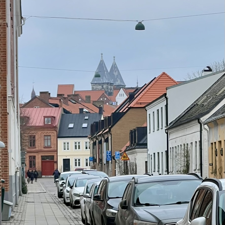 It’s not really Winter weather but certainly not Spring. And while the days are getting longer, it’s quite dreary, with an occasional sunny hour here and there to give us hope. But then the daily crush of bad news leaves us heavy hearted, so we look for distractions and new hobbies to distract and give us time to refuel for the resistance. We’re making an effort to get out of the house as often as possible and I challenge myself to notice different aspects and perspectives in the now familiar landmarks of Lund. Above is a view of the Cathedral towers from the south side of the remaining medieval ramparts that once protected Lund. The freshly renovated music pavilion with a glimpse of the play structures -child sized models of historic buildings from the 1907 Lunda Exhibition form an interesting composition.