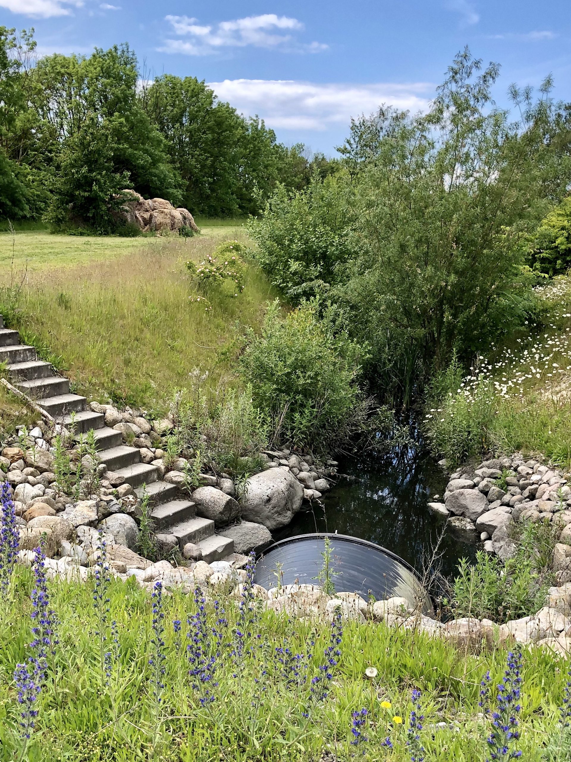 Lots of bird song and wild flowers! I normally can’t spot the birds, let alone get a photo, but this one in the parking lot was easy to see and my bird ID app says it’s a white wagtail.