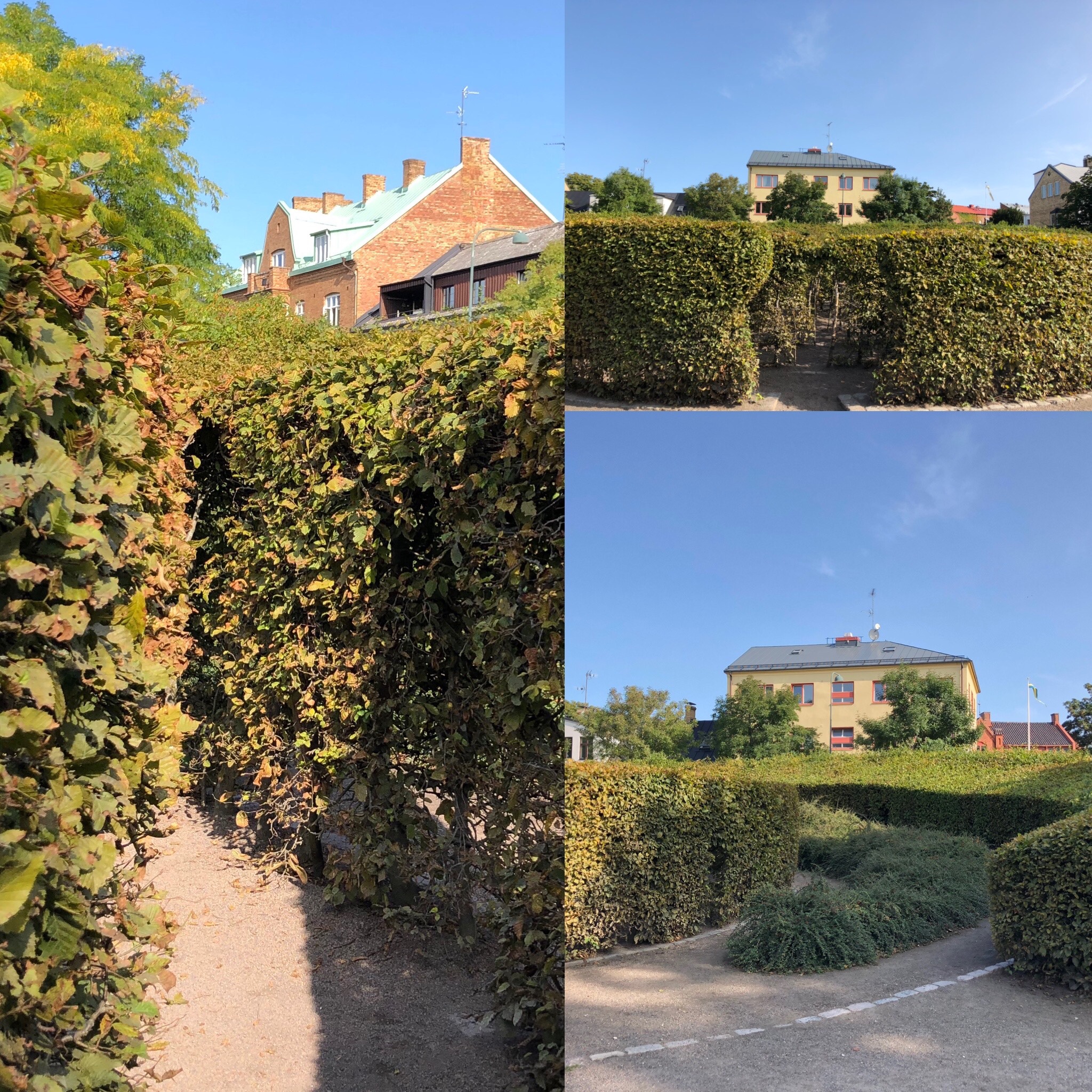 And today I spent a long while in the meditation maze hedge at Stadsparken. It’s a massive wall of thick green hedge from the back side. It doesn’t look so impressive, but inside it’s quite calming and more elaborate than it appears.