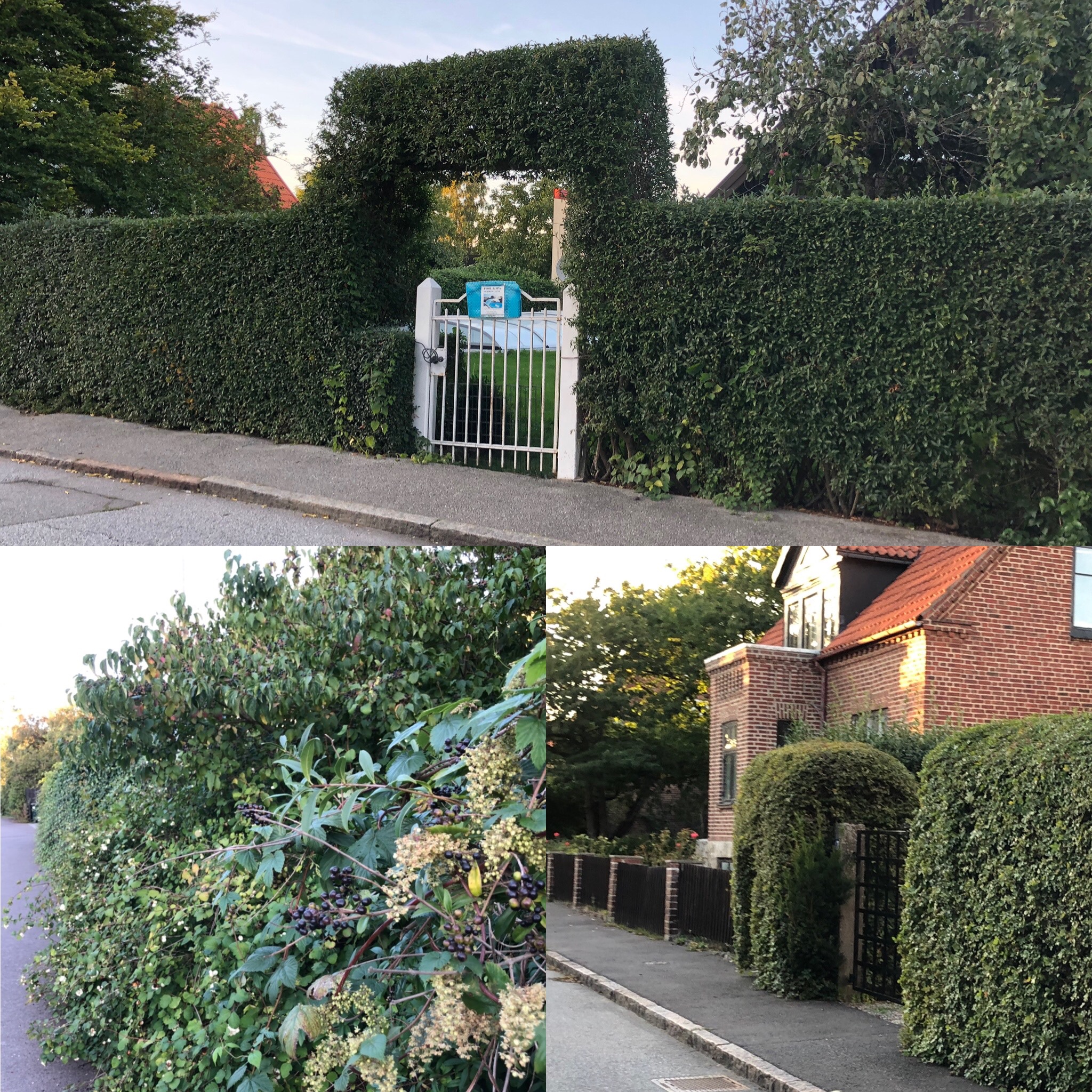 Hedges are a big deal here in Sweden. They are everywhere. Formed from almost any plant you can think of and in a huge variety of shapes! Some are free-form, but most are trimmed and shaped to some degree. Hedges are often shaped to accommodate mailboxes, trash and recycling bins, doorways, light posts etc.