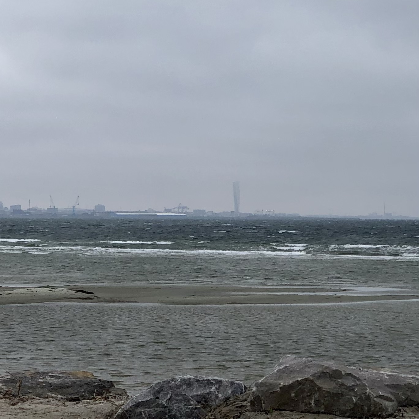 In spite of the clouds, we could see the Turning Torso in Malmö pretty clearly and even a bit of the Oresund bridge. There were several ships visible as well.