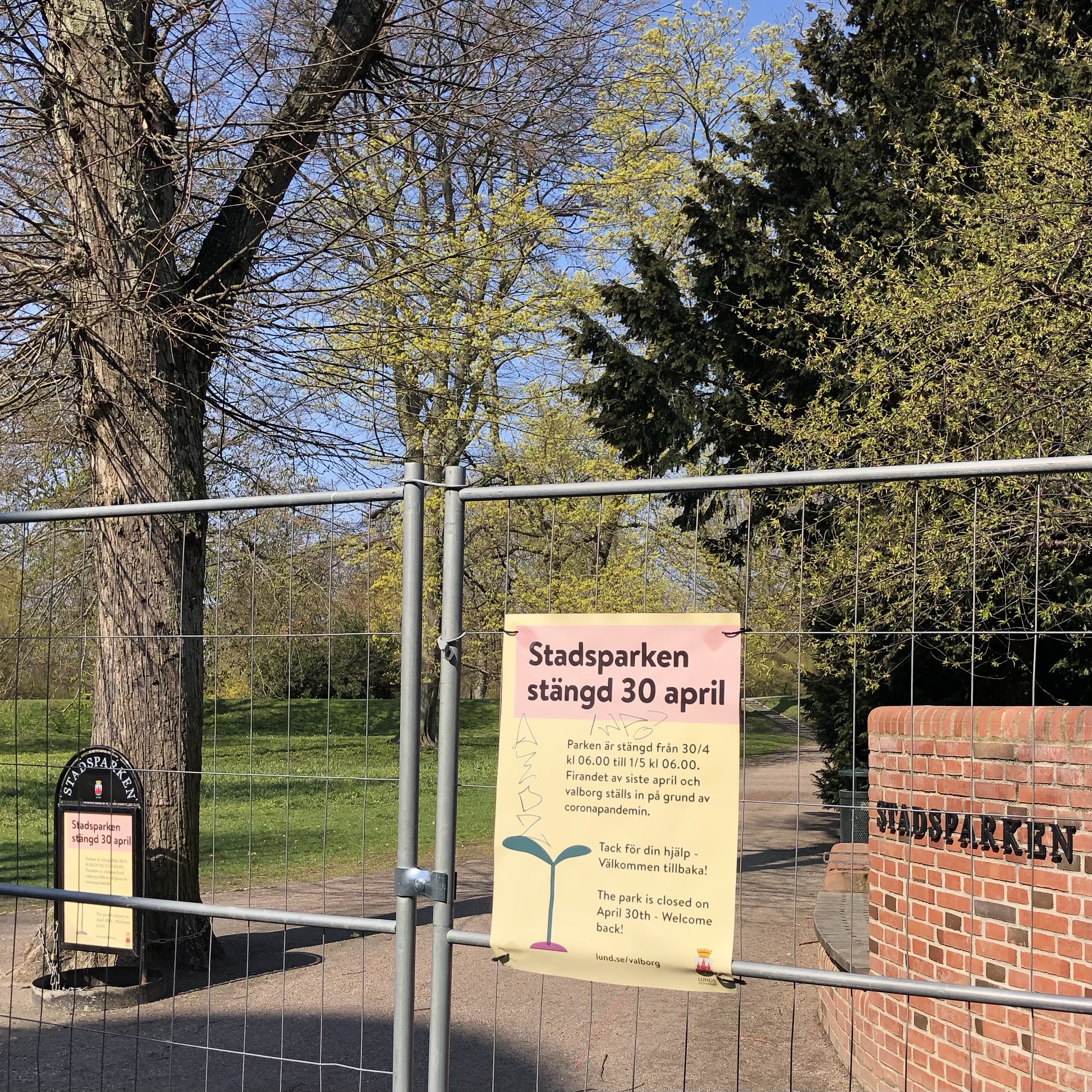 Lund is employing multiple strategies to stop large gatherings in local parks tonight. Saint Walpurgis night, originally a pagan, equinox (Beltane) festival turned folk fest, with singing and bonfires has in recent decades become a huge party for students who have just completed their Spring exams. Lund has possibly the largest (unsanctioned) party in the country. Authorities have been preparing for weeks.