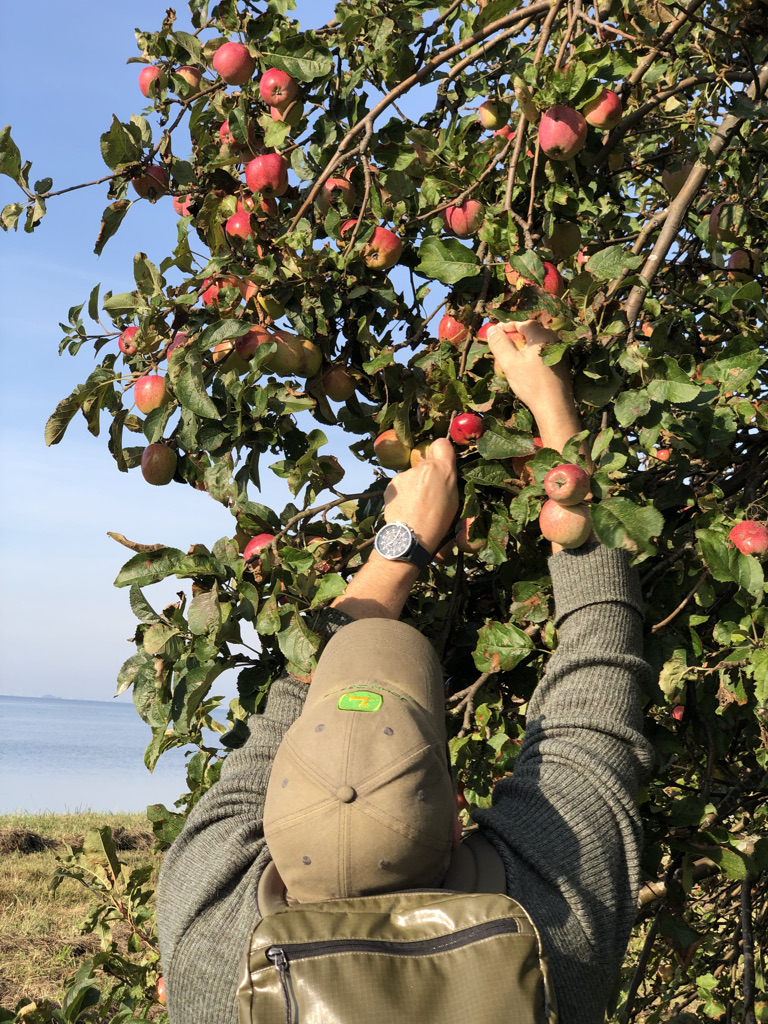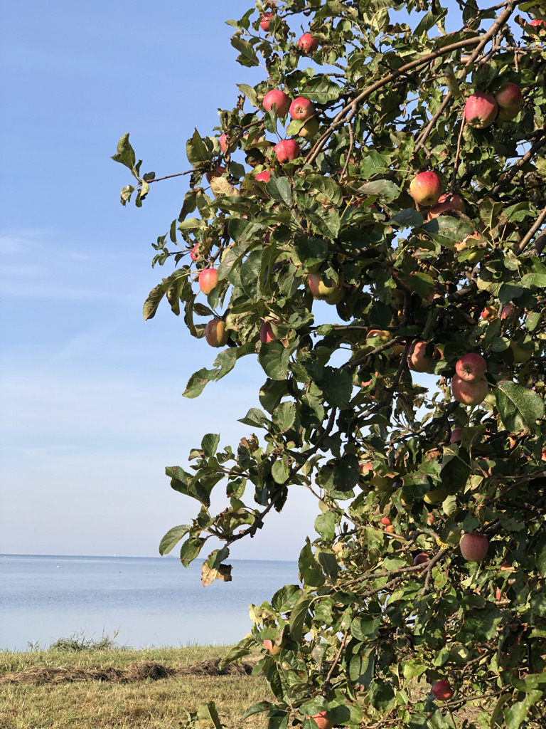 L is very much going to enjoy the Cold Bath House, though she wasn’t up for a spontaneous visit. This one has a sauna and hot tub, plus a nice restaurant. It’s quite a long pier- 600 meters. This apple tree looked out of place growing right by the beach.
