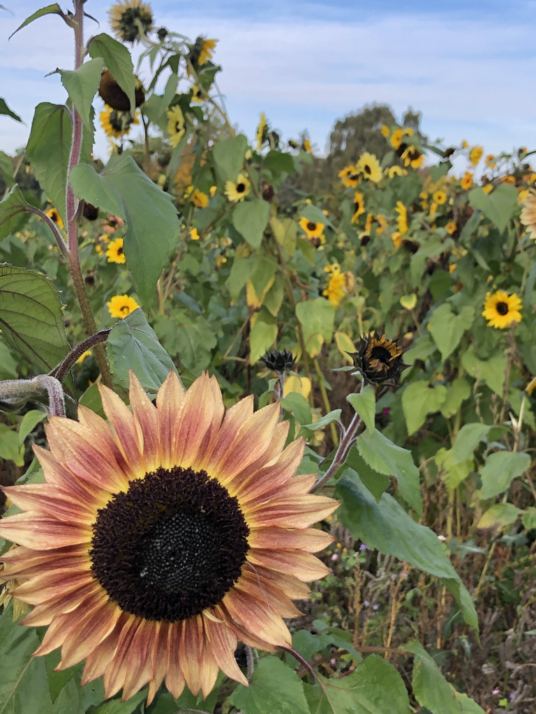 We tried to get out as much as possible this weekend to enjoy the lovely weather. I’ve been trying to photograph the sunflowers on a sunny day and finally managed at least a bit of sun! The city of Lund plants some areas of land with sunflowers or fruit trees, berries, grapes and such for residents to gather. This field is down by the highway.